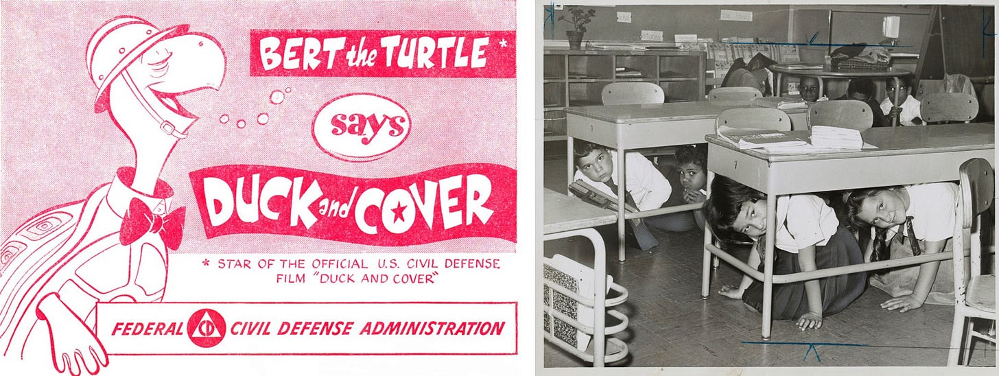 đNuclear weapons are societyâs worst nightmare. Theyâll blow up a city but youâll be ok if you just duck under your desk (aka, âfear and obeyâ).